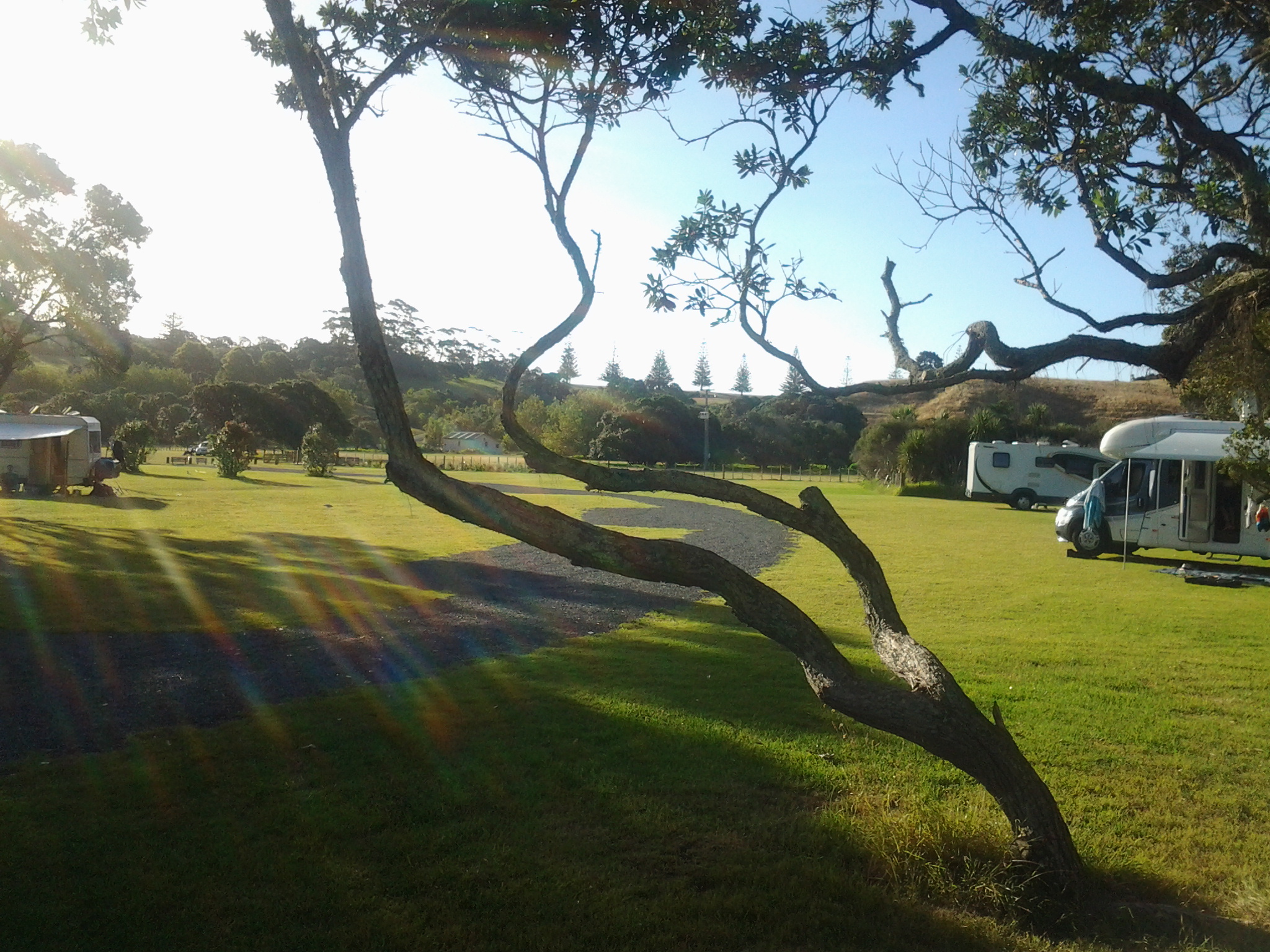 Great day-walks around the peninsula. Good opportunities to swim in the sea since it's very still here. Great view across the bay to Auckland skyline. Self-contained area and camping area (incl. vehicles). Showers and dump point available at camping ground.