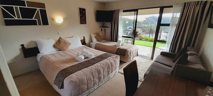 All have new queen and king single beds, 32” LCD TVs, DVD player, full kitchen (including fridge, cooktop and microwave, jug and toaster, cutlery and crockery), en-suite bathroom with a toilet and shower, poolside patio with fantastic views of the lagoon and reserve