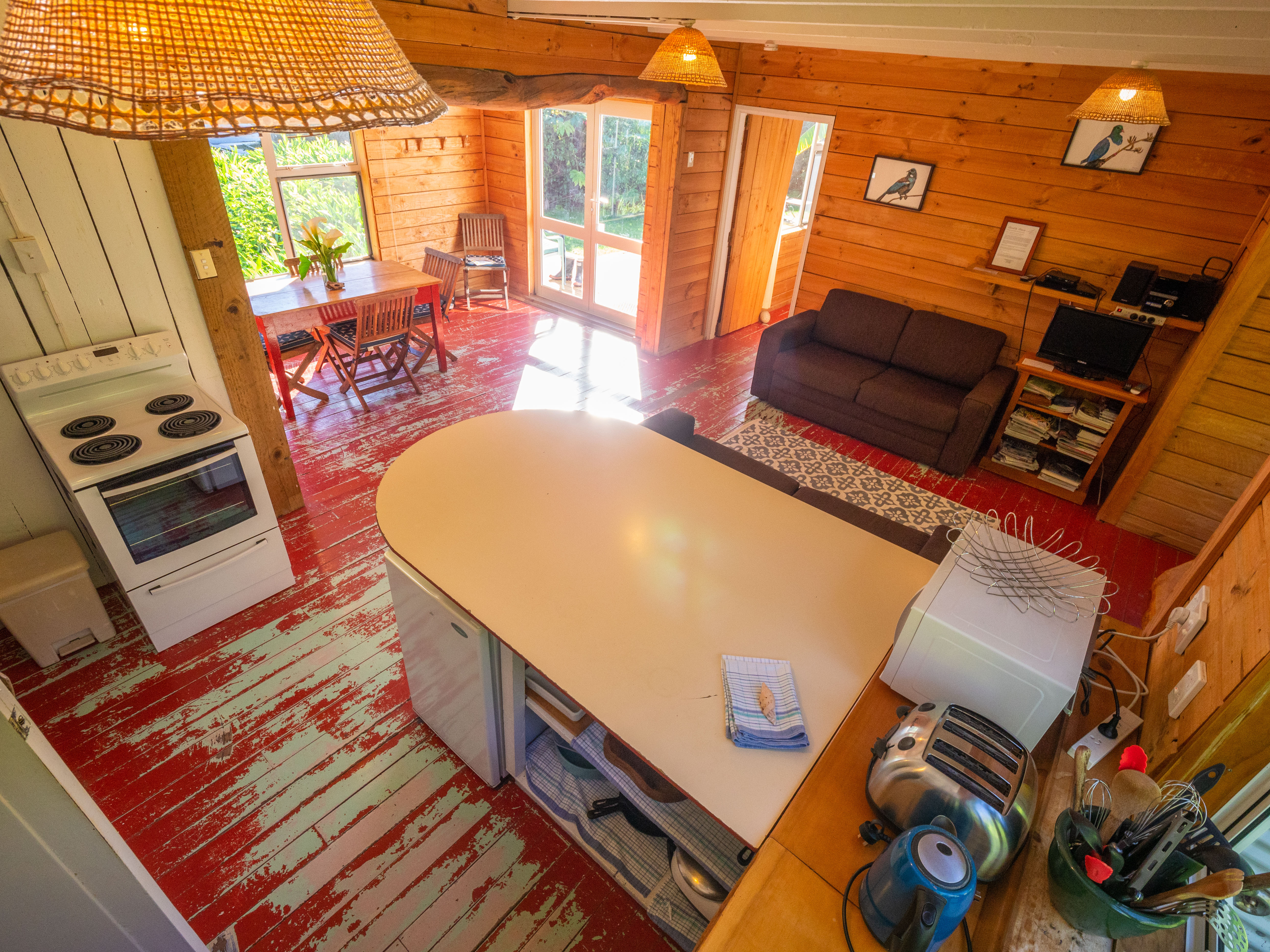 The Beach Cabin, nestled below the subtropical forest, has a view of the sea with only a minutes walk to the beach.