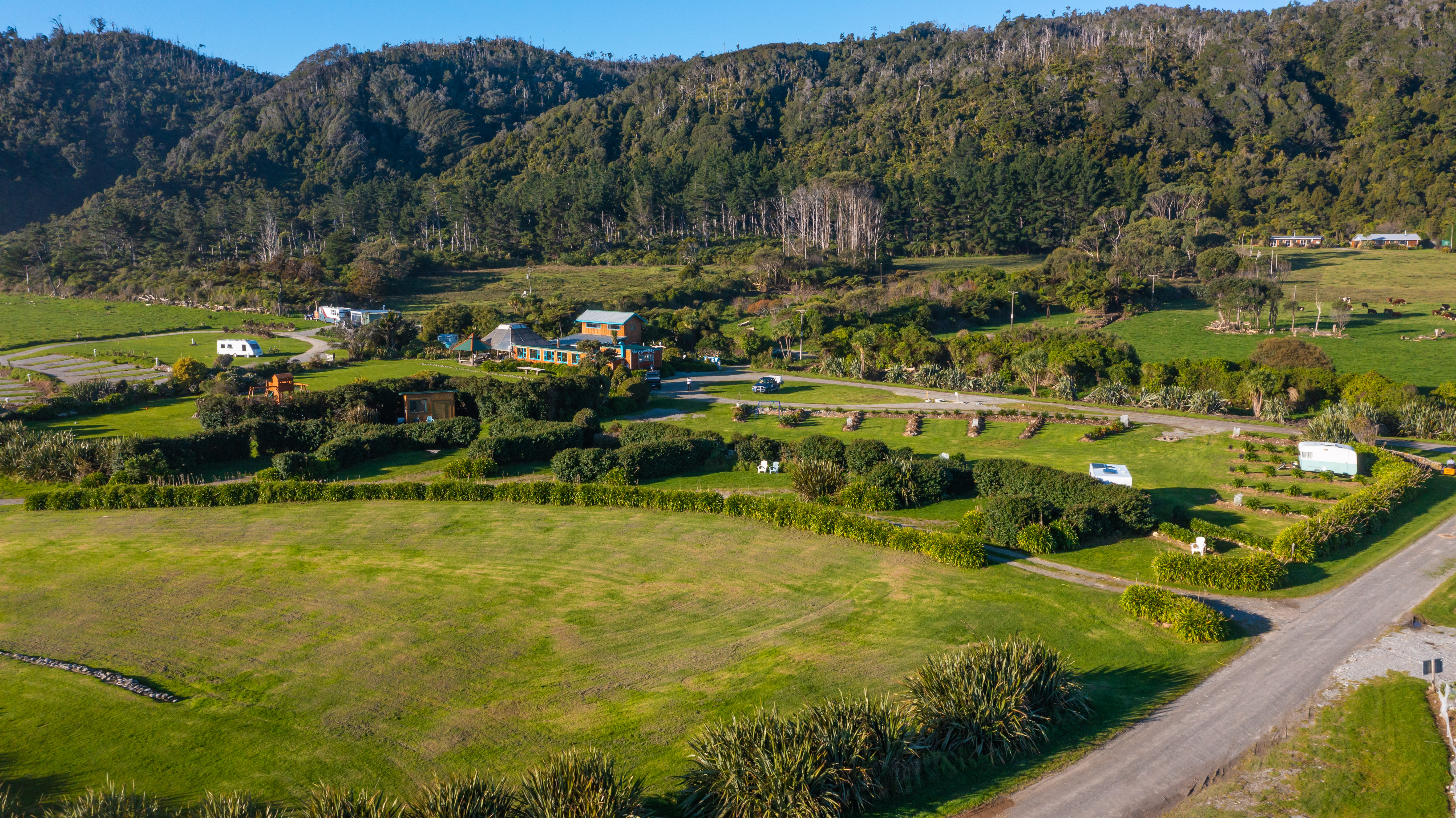 Gentle Annie has a beautiful camping ground at the mouth of the Mokihinui River. Sheltered and private camping sites are set amongst landscaped gardens, all within a couple minutes walk to the river and beach.