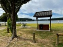 No amenities but flat grass sheltered by trees and right on lakes edge. There are just a few places where you can access the water as the area is surrounded by dense foliage.