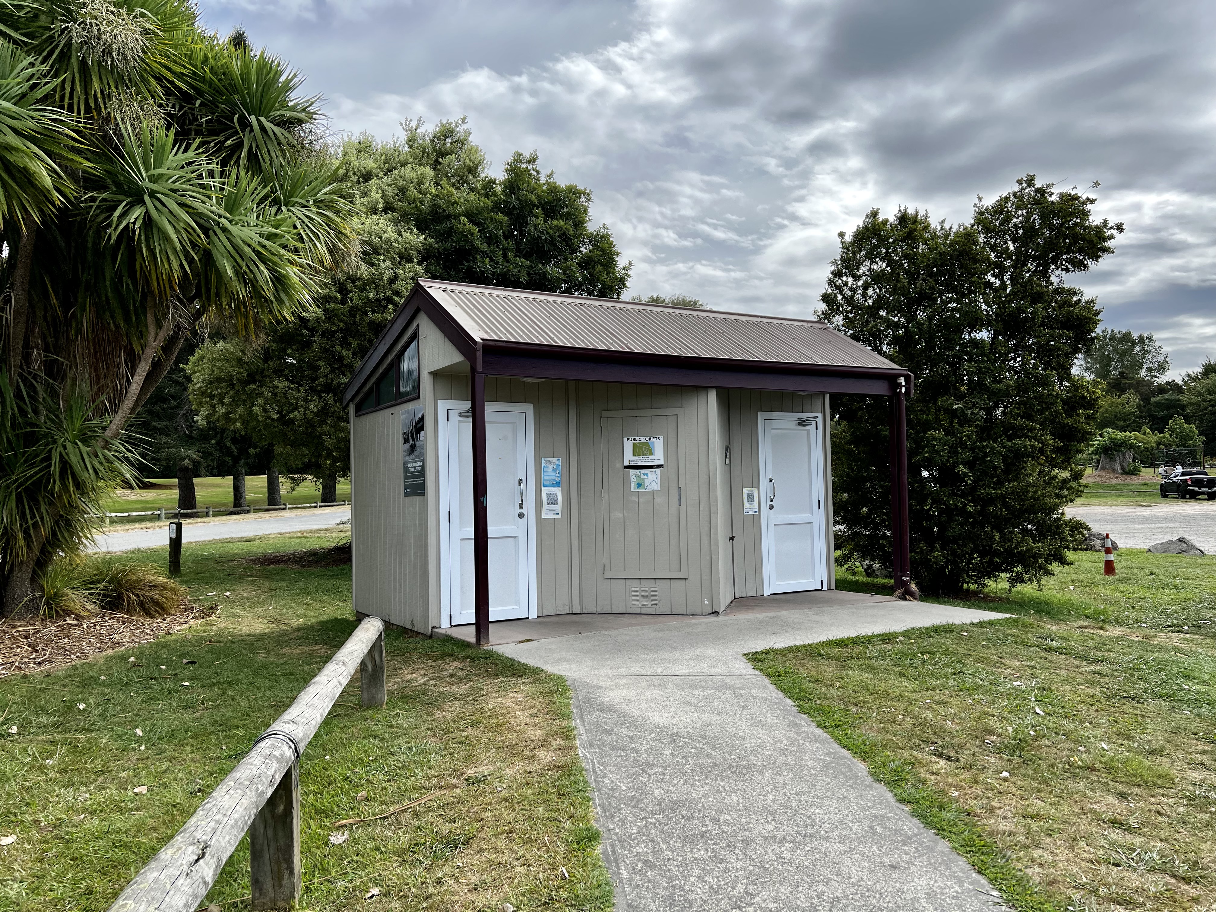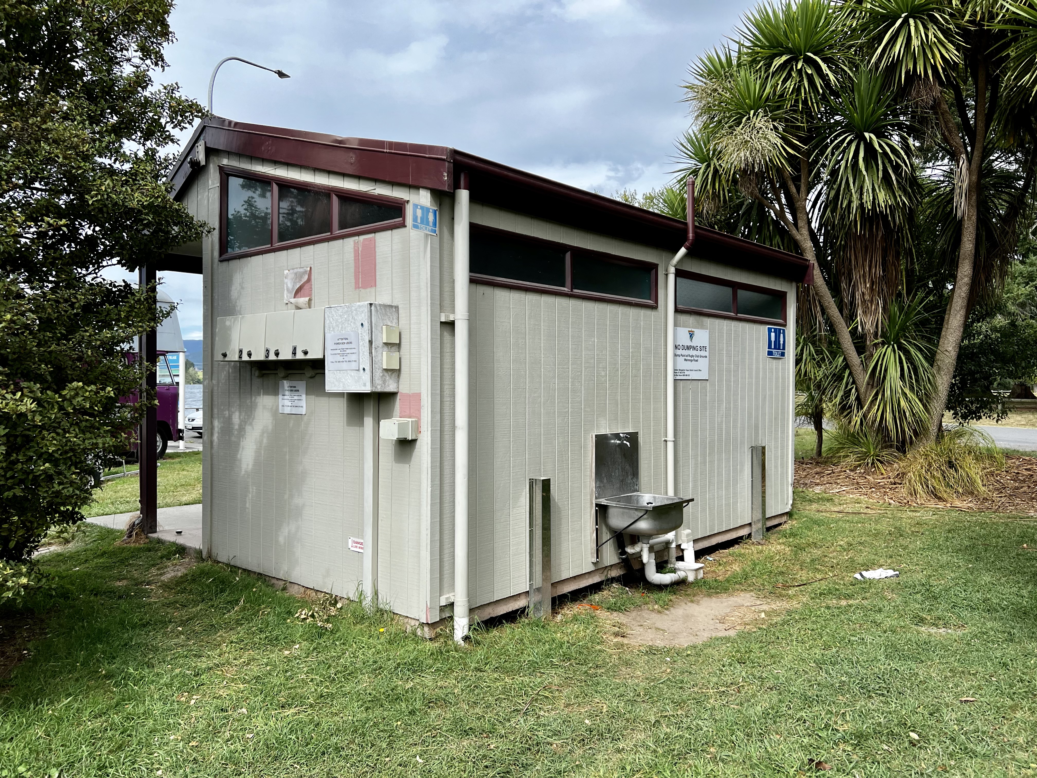 Great hut for cooking under, it rained our entire stay so was good to cook and stay dry! Right beside a play park and a golf course also. Drinking water available on an outside tap (near the road ramp) only downfall was that the toilets smelled quite bad both nights that we stayed here but friendly locals and laundrettes, shops and bakery close by just up the road.