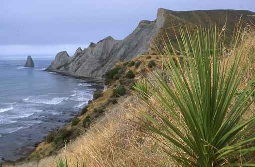 Some of the rock layers along the coast were deposited under marine conditions in shallow seas and exhibit occasional shellfish and fossils. Other layers are freshwater in origin, a coarse conglomerate of pebbles and mud; while some strata are volcanic in origin, caused by either ignimbrite flows or wind blown ash and pumice. All were deposited between 300,000 and 1 million years ago.