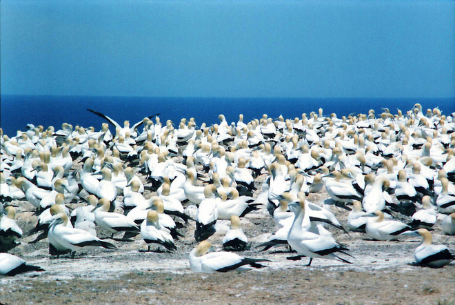 An Australasian Gannet refuge at the cape is one of the finest places to watch the antics of these eye-catching birds.