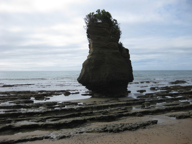 In contrast, Cape Kidnappers is composed of ‘papa’ rock, a bluish grey siltstone, formed around 4-5 million years ago. It has been eroded to the shape we see today with an impressive rock tower off the headland. You can watch the waves crashing here and witness the immense height attained by the foam as it rises and descends.