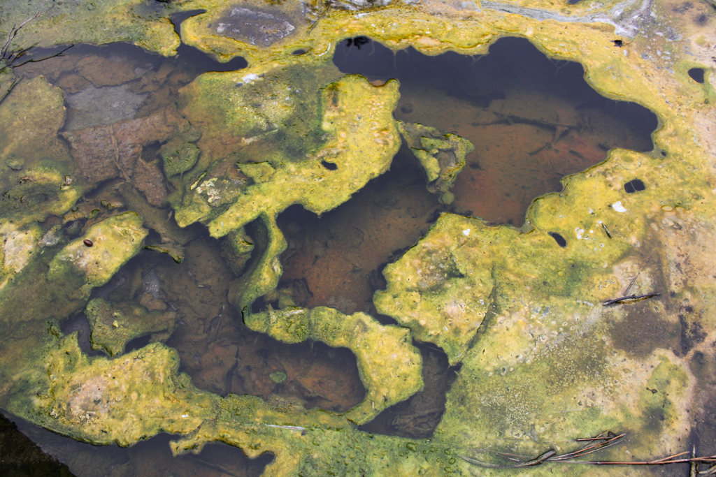 Parks in Rotorua with mud holes and sinker terraces, some free mud pools on the way to Taupo, thermal spa park in Taupo - funny experience with hot and cold water.