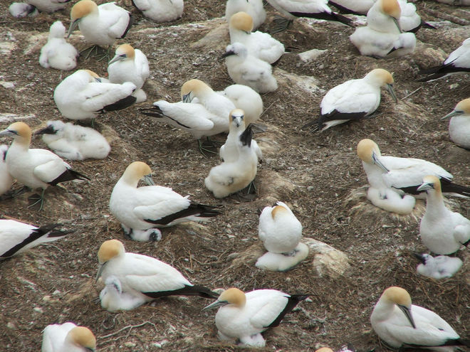 Between July and January, you can observe the gannets as they return to their original breeding grounds, establish partnerships, breed, nest and rear their chicks. The close proximity of the viewing platforms allow you to observe courtship displays, aggressive territorial squabbles (where beaks are locked amid much wing flapping) and rearing of nestlings.