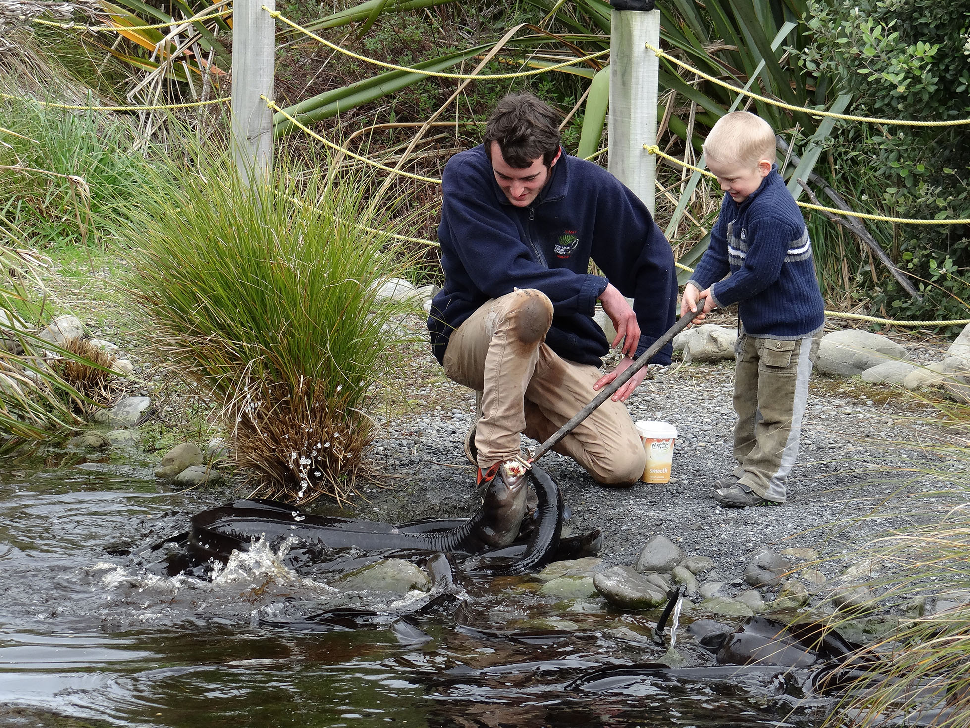 Young children love feeding the ducks and people of all ages enjoy feeding the eels at 2pm. Children can explore the bush walk and climb up to the lookout tower and then spot a monster hiding in the forest on their way back (2016 Summer 'Bring your Wild Things Out' promotion). There are seasonal displays in our visitors centre (we post about these on Facebook) and children have enjoyed many different nature experiences at Nga Manu. Our Ranger for the Day Experience is perfect for children 7 years+ and is a really immersive day.