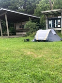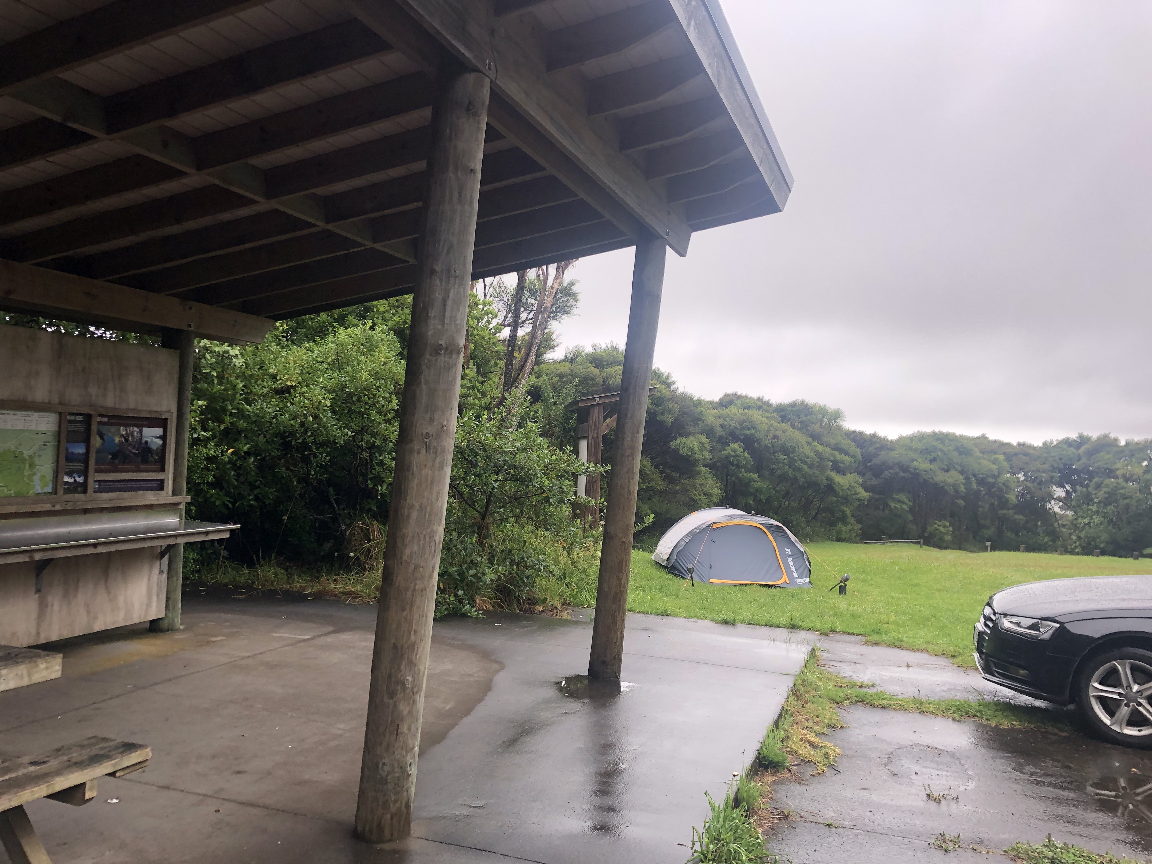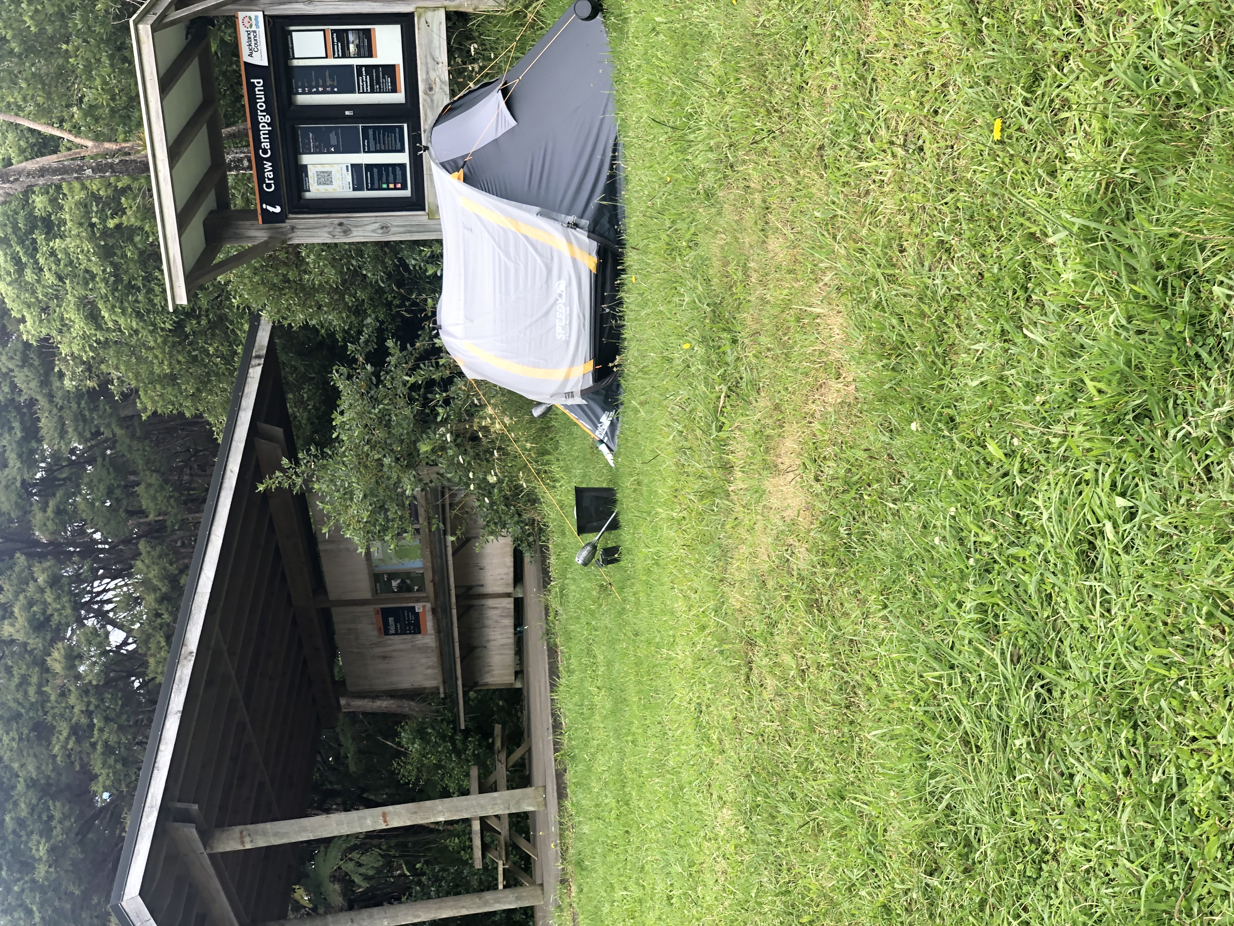 The Craw Campground off winding Anawhata Road is a grassy area on the ridge next to the old Craw Homestead.