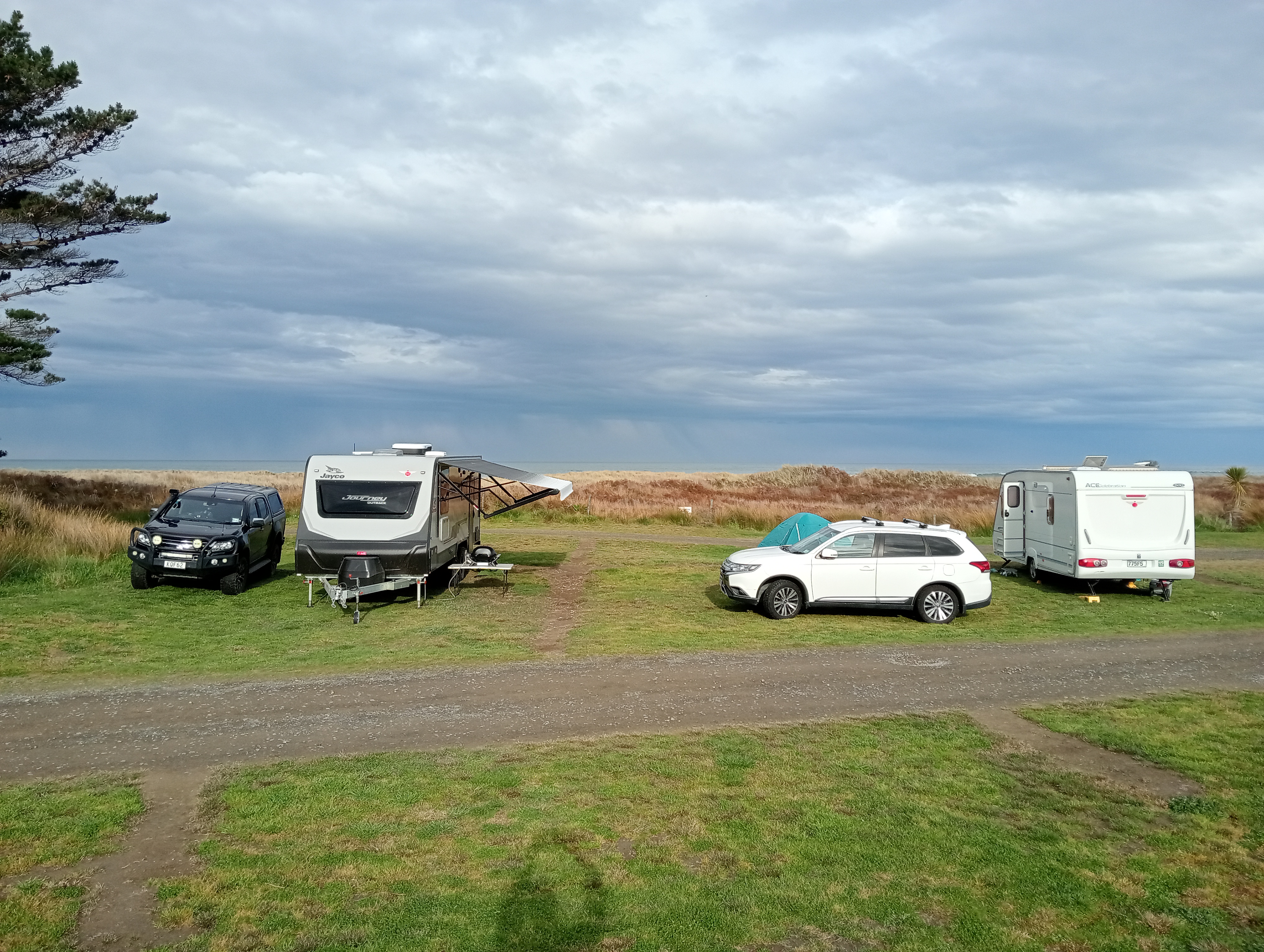 Choice of paddock or under the pine trees. Good toilets and water available. Short walk to the beach and can walk for hours to the left. Good cell coverage and dog friendly.