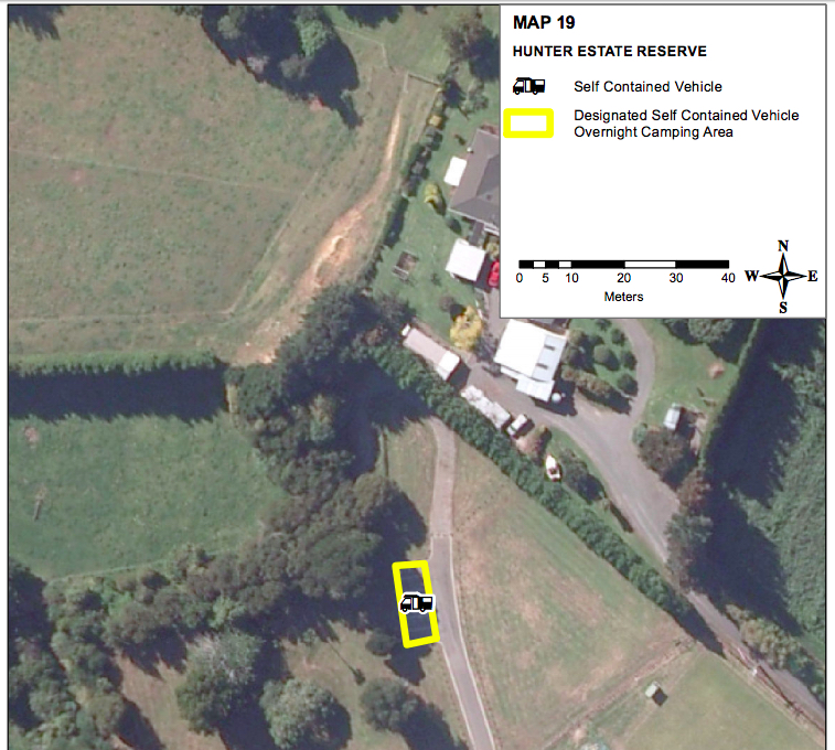 Campervans and motorhomes displaying self-containment certification can park at the Hunter Reserve just south of Katikati for up to 3 nights.