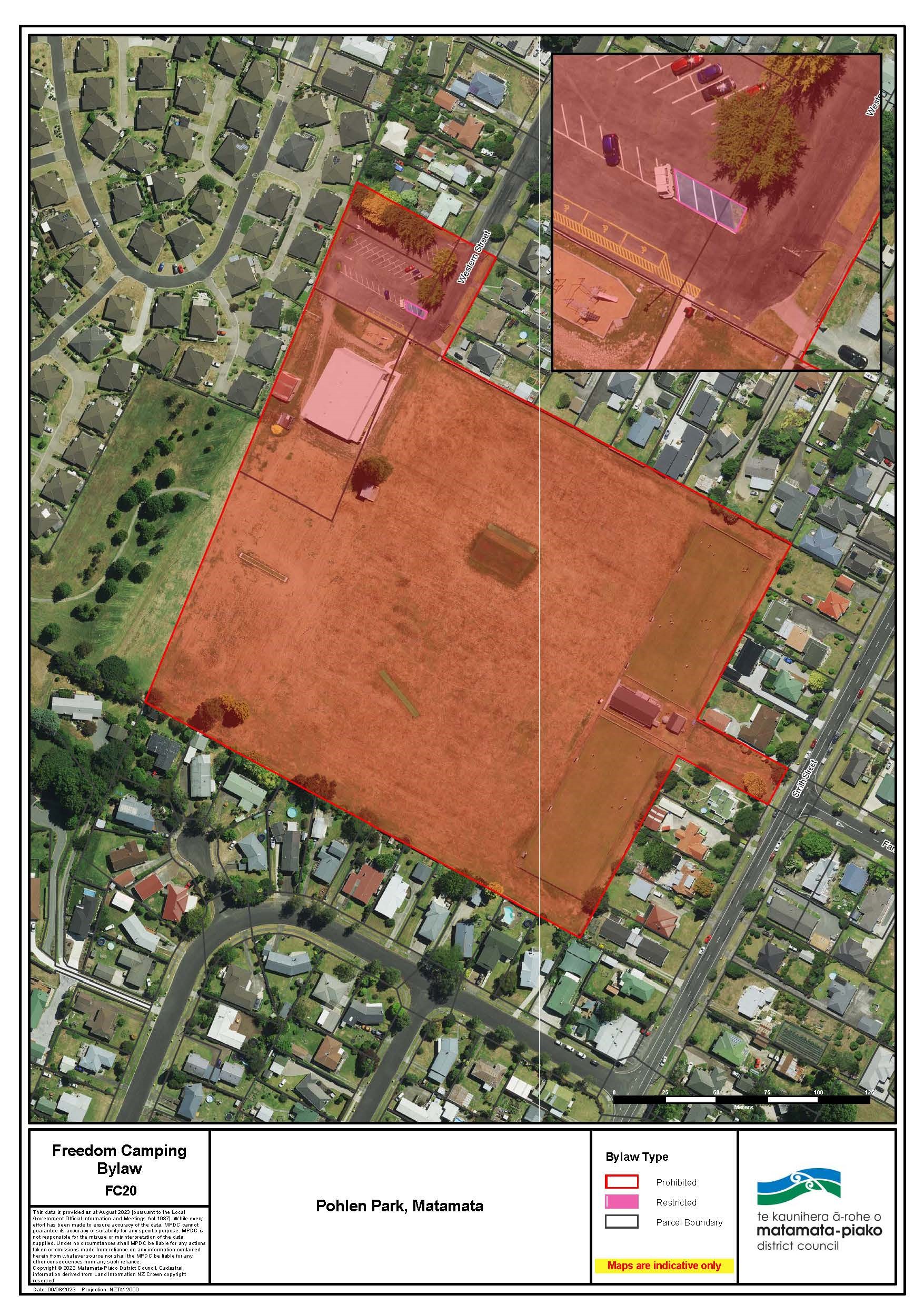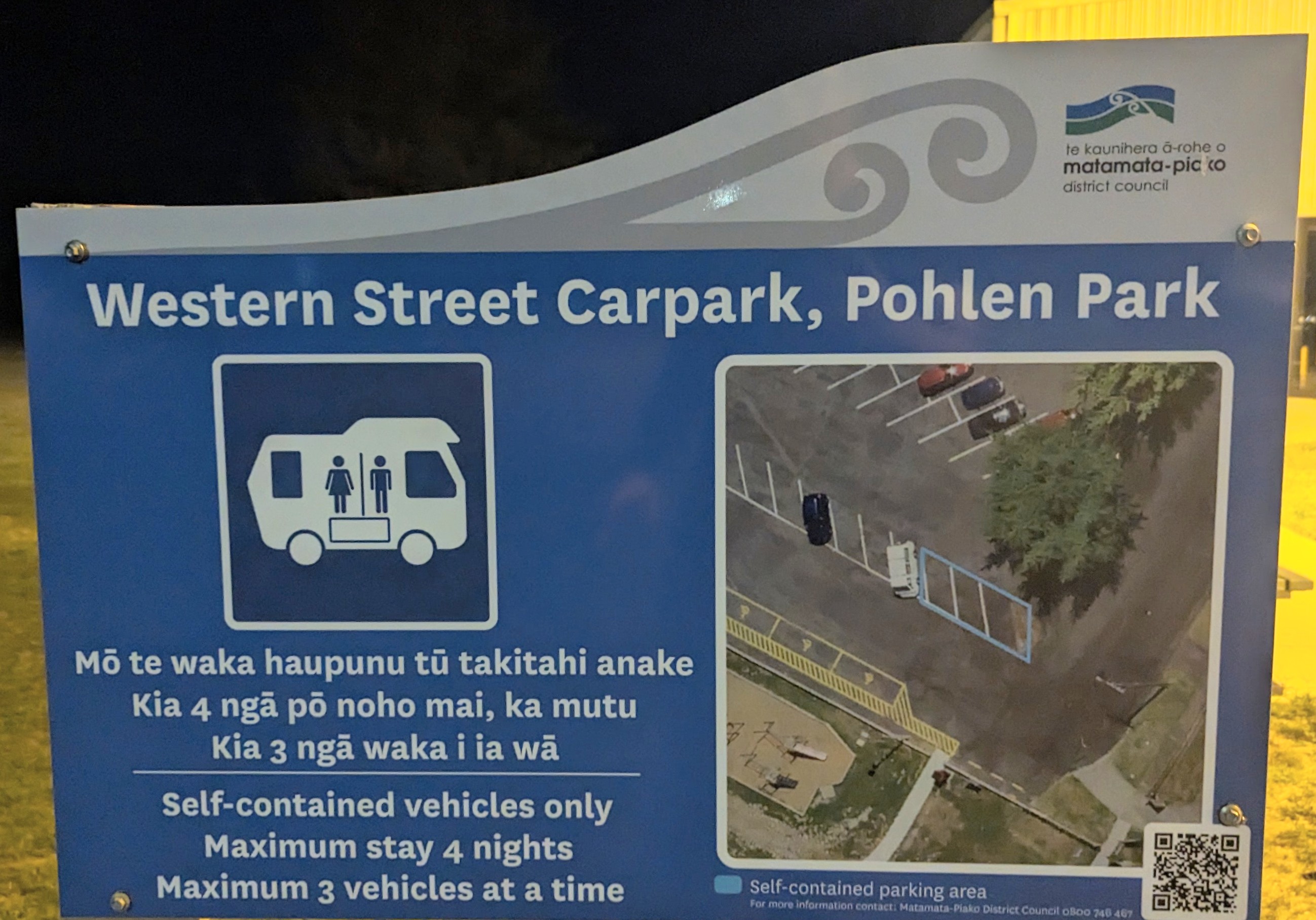 Campervans that have self-containment certification can camp at the Pohlen Park car park