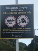 Area split into two, one side for self contained vehicles only, the other appears to be no overnight stay, but there is a sign explaining this. No water, but has three drop toilets here, which are clean enough. Was great for us, as we would have been arriving in New Plymouth late, so this helped us out. Black sand, can walk out to the ocean in low tide, place is nice