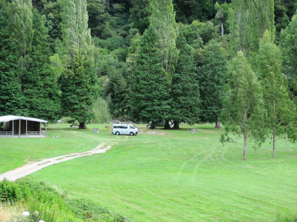 Large open area, free showers, clean flushing toilets and two swings. A good relaxing stop after the excitement of the Buller River!