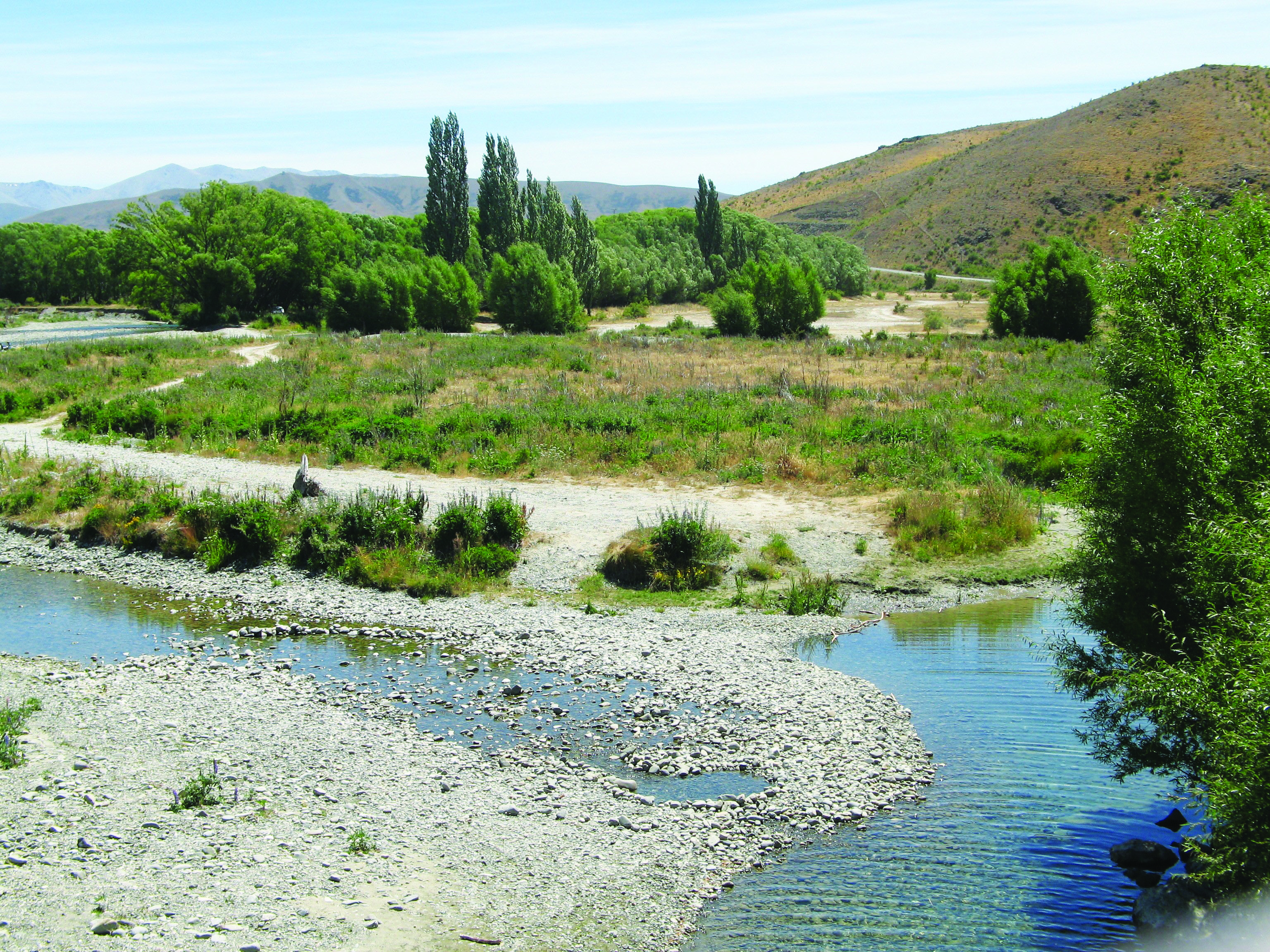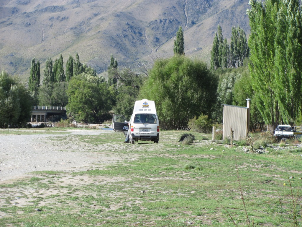 Drop toilet. Good mobile coverage. Ground was hard, so tents would find it difficult. Walk through a grass and tree vista, lupins in bloom, rabbits roaming, towards the fast flowing, crystal clear water of the river.Surrounded by hills. Close proximity to Omarama and also the clay cliffs.