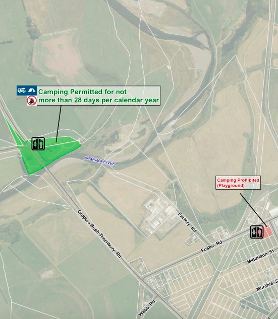 Contacted the council. Nice spot. Flat ground, grass next to river. But next to a busy road. Camping on both sides of road, sign post points only to east side.