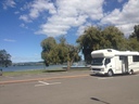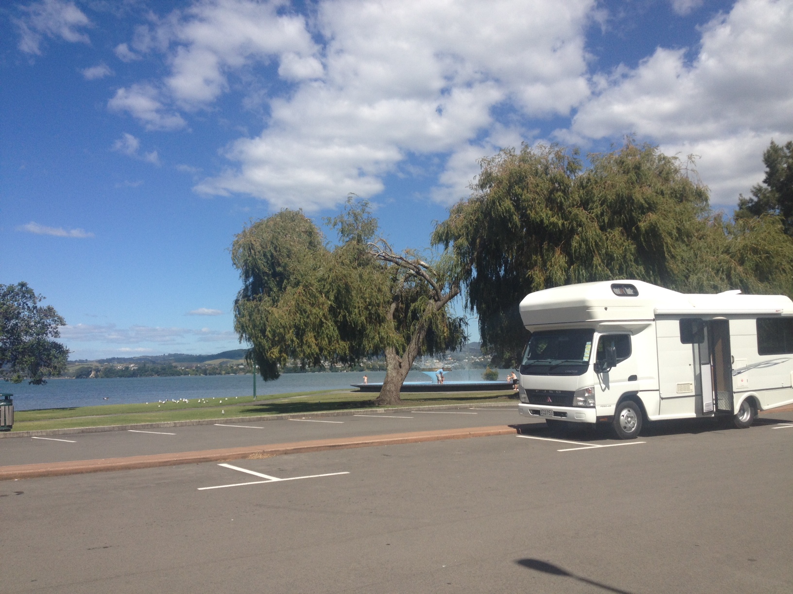 Toilets were supposed to close at 8pm but were open the whole night and of decent cleaness. Good start to walk through Tauranga. Spaces quite small, only 1 was big enough for our Campervan (7m long)