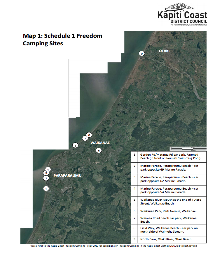 Beachfront carpark opposite number 69 Marine Parade, Paraparaumu Beach. Up to 2 self contained campervans that can stay a maximum of 1 night.
