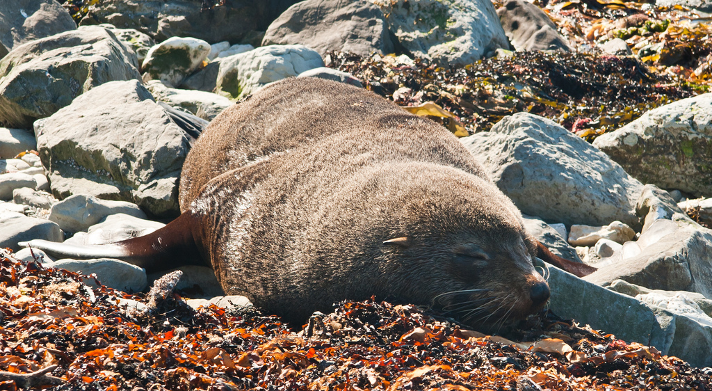 North of Kaikoura, good sight, just some seals relaxing in the sun.