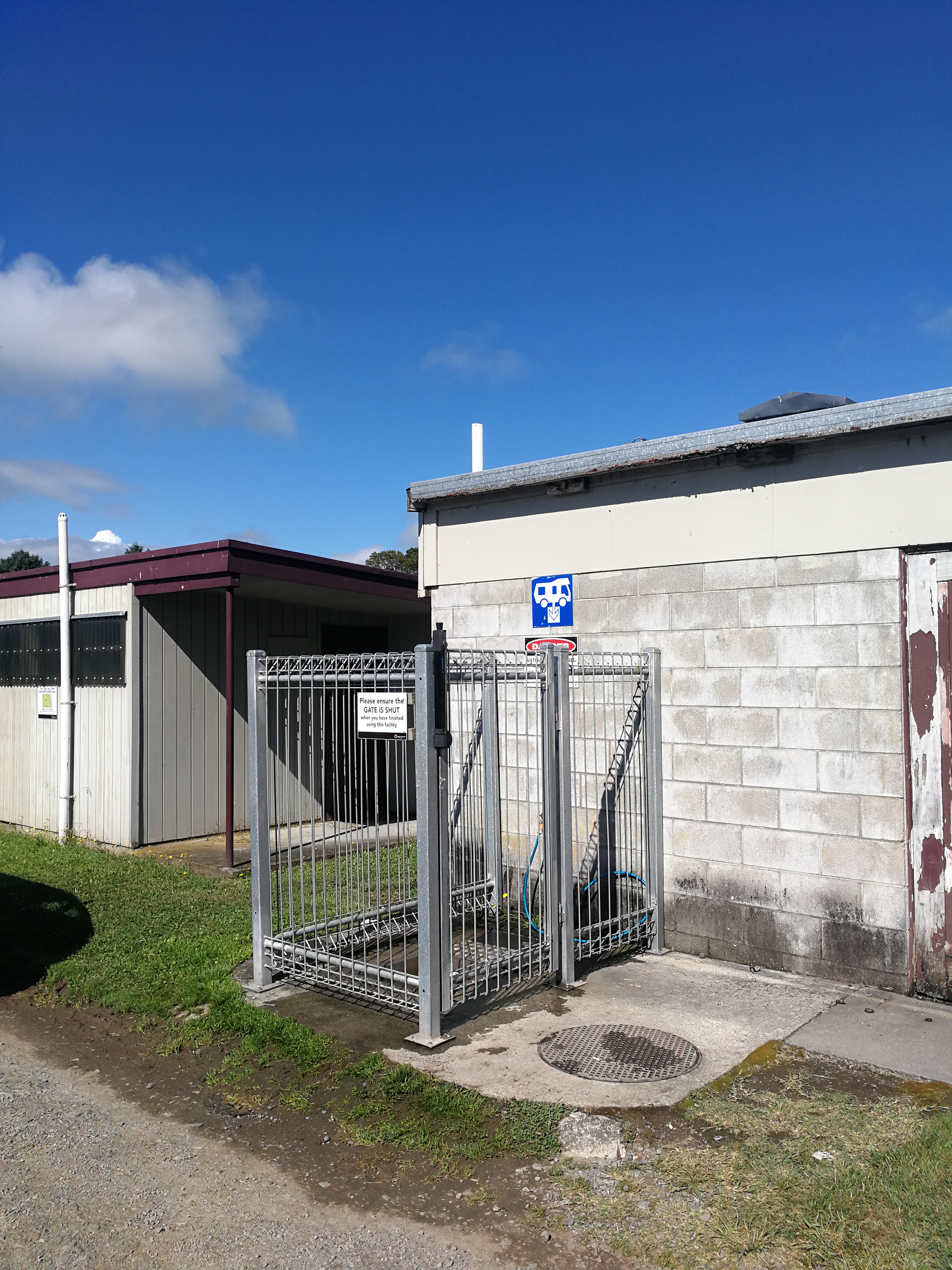 Well done.At the sports field. Behind a fence to open. Well signposted when you turn into Wairenga Road. Everything you need. Fresh water a little further back at the house or around the corner on the lawn.