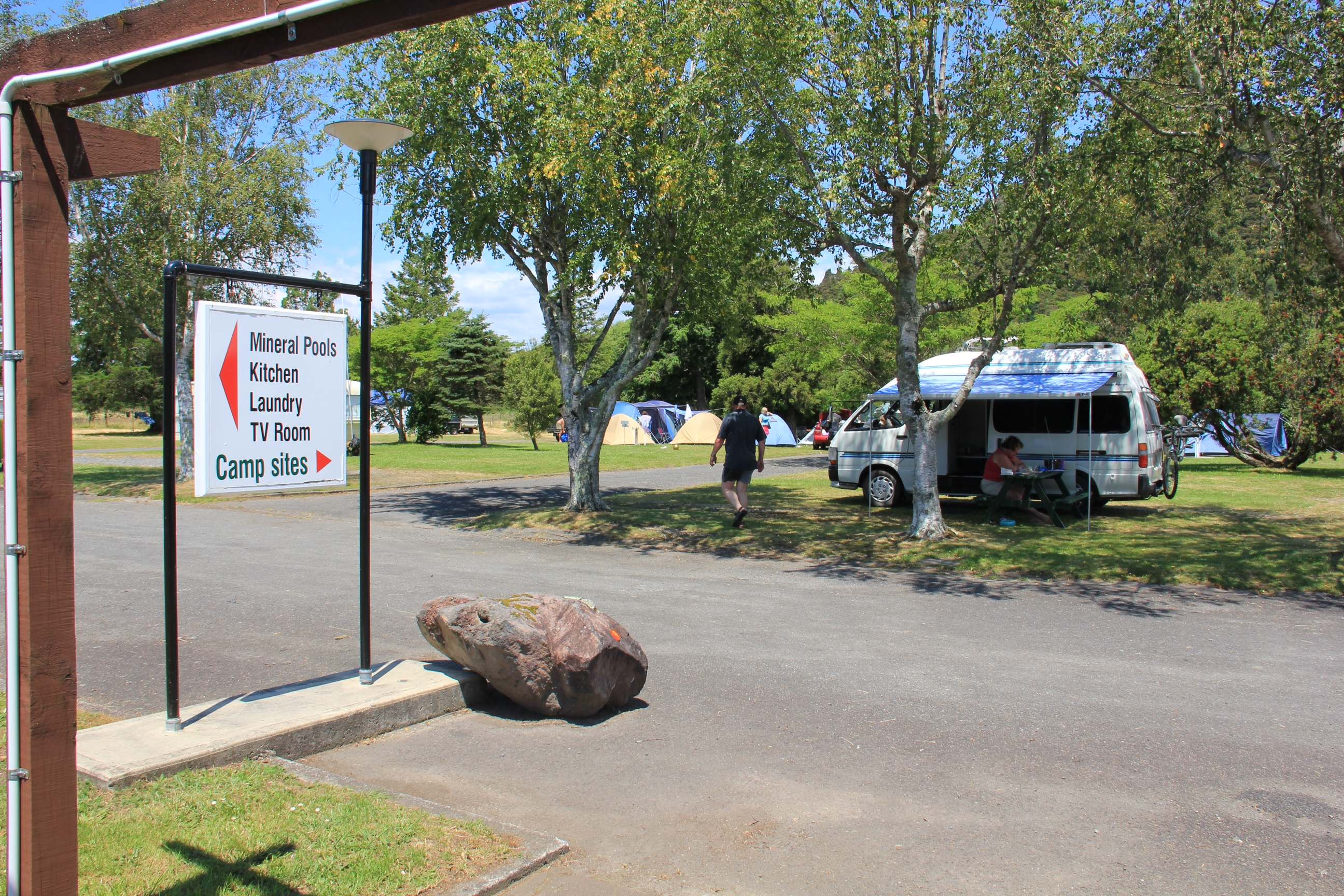 Toilets and showers are ok, you can play table tennis!! Hot Pools 24/7, great campsite with awesome.view! 20$ pP unpowered camp site with wifi (1gb data).