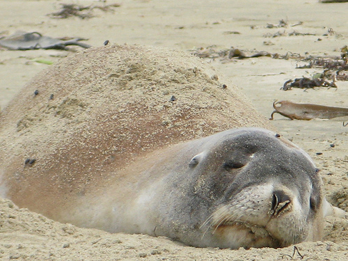 A short walk onto a long white sand beach which is a popular haunt for Sea Lions.
