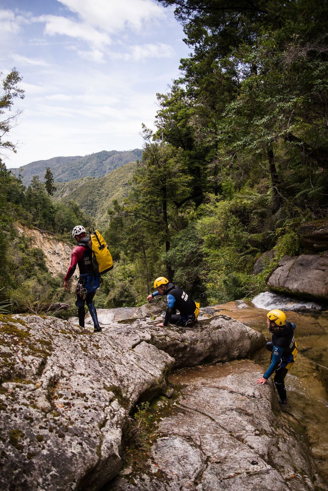 This is more than just canyoning. This is our truly remote canyoning expedition. Everything about this trip is massive; the walk in, the trees in the native forest, the features in the canyon, the amount of food we bring for you, the walk out, and the smile on your face at the end of the day. If massive canyoning features in a remote setting is your idea of adventure, then Waterfall Creek is the trip for you. BE WARNED: This might be the most challenging activity you will do in New Zealand. Previous canyoning experience and an excellent level of fitness is required.