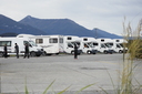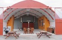 Huge Quonset hut common area, clean and hot showers and bathroom. The management was kind enough to come around the next morning and tell us that the road north was closed and we probably had 10 minutes before the road south would be closed due to rain. So we could either leave right now or stay for 5 days. We left and were grateful for the warning.