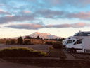 No public toilets available on site but they are available down the road. You can park up either on a grassy area or in the car park which was another plus given the weight of our vehicle and the slightly boggy grassed area. And the bonus....waking up to a magnificent view of snow covered Te lka-a-Maui!