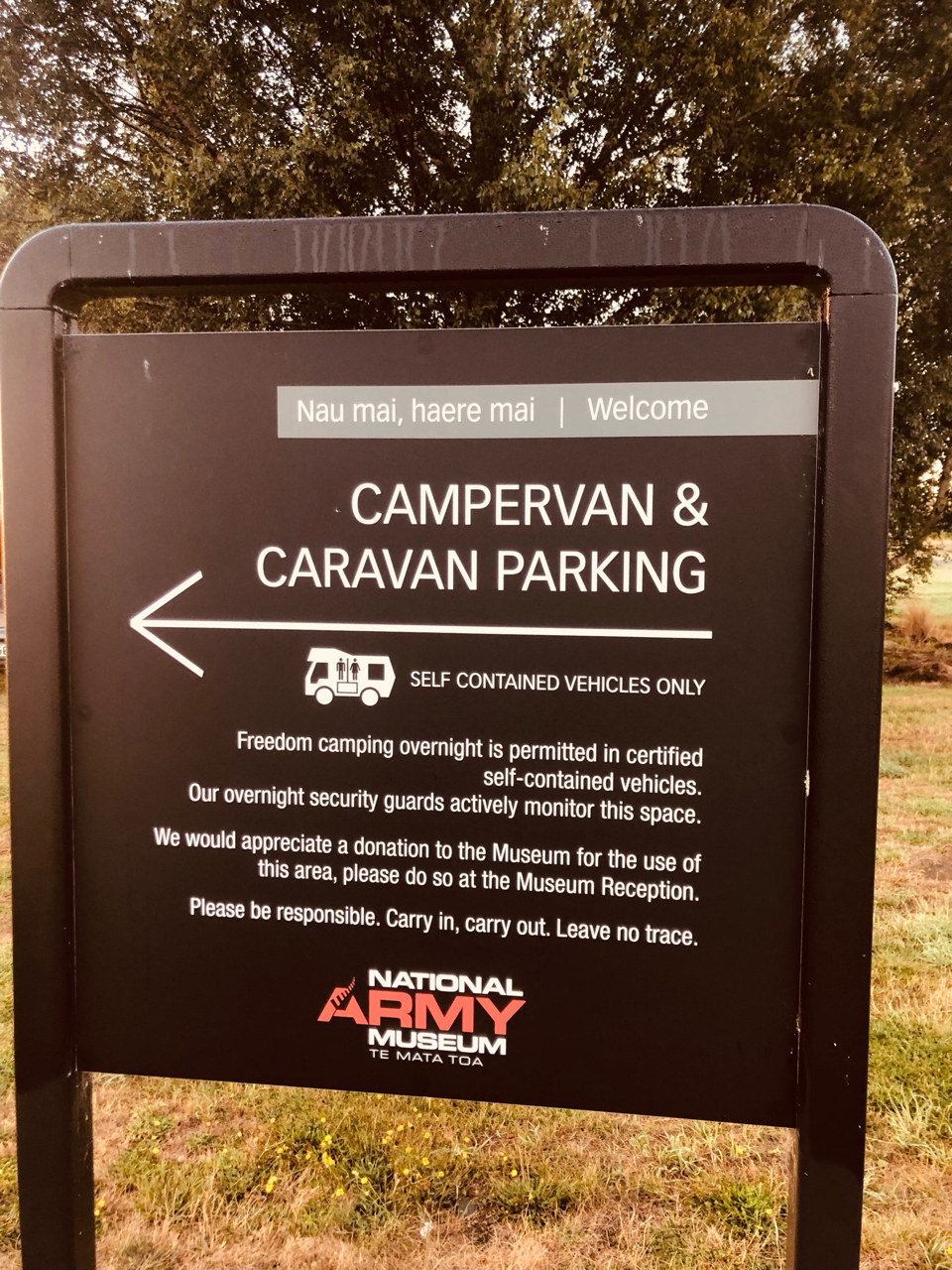 You are welcome to stay in the Museum car park but they only allow self contained campers to park there overnight. Please note they have overnight security guards who come around and check that you are self contained.