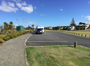 Campervans can only park in the middle for overnight camping. My neighbors got a fine of 200 NZD because they stood too much on the right. The signs with the warning are very poor.