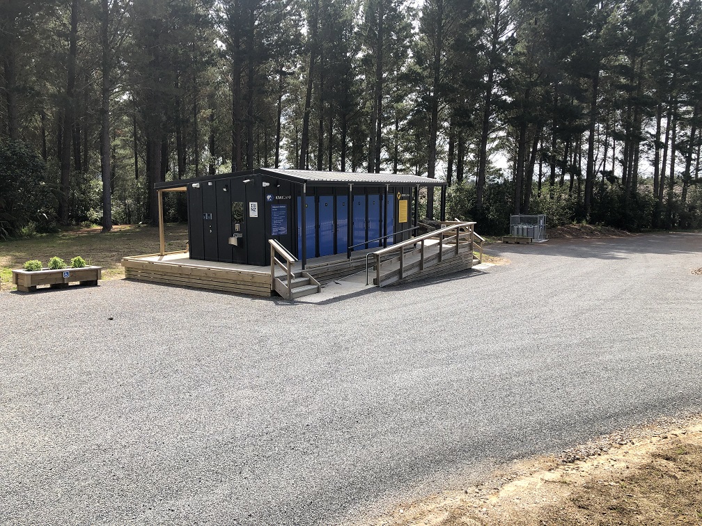 The new kiwicamp toilet, shower, laundry and kitchen block require a kiwicash electronic key to use. Outlets that sell them can be found here https://www.kiwicamp.nz/find-a-key/