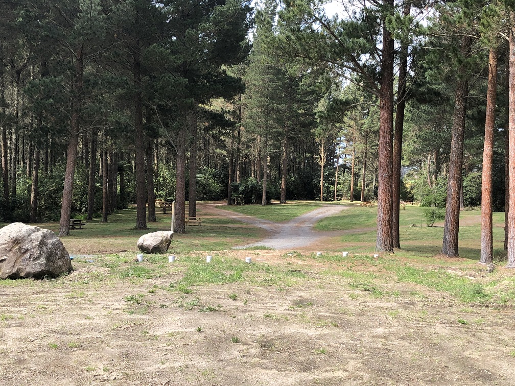 They no longer allow tents in this area so campervans can park in those spots some of which have picnic tables. We had a great spot for two nights with trees so we put our hammocks up. Good toilets and drinking water. People keep arriving late as there is so much space but otherwise really quiet and peaceful. We will be staying here again on our way back up the North Island for sure!