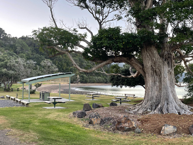 Waiomu bay is beautiful to look at and there are lovely pohutakawa trees providing lots of shelter.