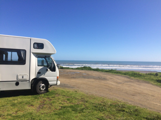 Situated right by the beach and somewhat private, as it's tucked behind some some roadside trees. (A little bonus is a resident Weka family that lives in the trees :) There's is still some reasonable road noise though as SH35 is very close. But I awoke to a beautiful sunrise looking north towards the wilds of the East Cape.