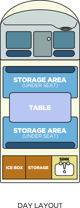 It comes with a TROPICAL ICE BOX that will keep your ice much colder & last longer than a usual esky (plus you save on any campsite fees as it doesn’t require any electrical power to recharge). With plenty of storage for your personal items as well as two electrical power-plugs to charge your electrical appliances (only at powered campsites) all you need to throw in is your sense of adventure.