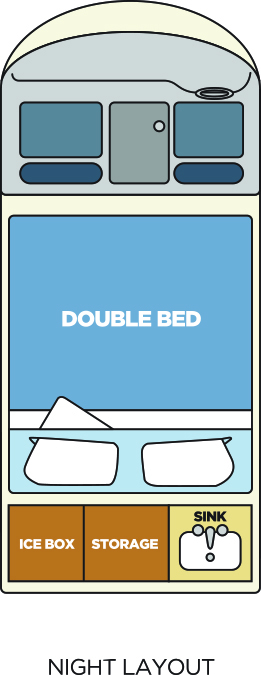 The Chubby Camper is ideal for two people with lots of internal space to eat & sleep as well as a built-in kitchenette with lots of space to cook, LED internal lights, and 2 USB chargers. PLUS for an extra $50/hire (fee to hire portable toilet ) you can opt for the self-contained option and freedom camp your way across New Zealand.