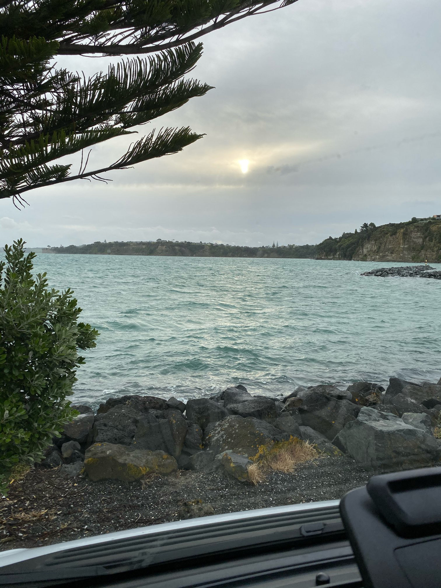 Not too far from Auckland, right on the waters edge and next to a beach and stream. Toilets were nice enough, bins and dump station. There is a burnsco and laundry a few minutes away and coast shopping centre 10 minutes in the car and Silverdale 20 minutes. We loved the views and the atmosphere. We stayed again on our way back down.