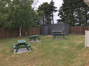 Small children's play area. Sheep and horses near. Views of snow capped mountains. Clean toilet facility with self closing front door, light automatically comes on. 3 outdoor tables and benches. Washing up sink with bench. There us also a small covered Pavillion for wet days. 2 rubbish bins.A lot of comings and goings as people walk their dogs. 25 minute walk to the Village. Great dining at Route 72.
