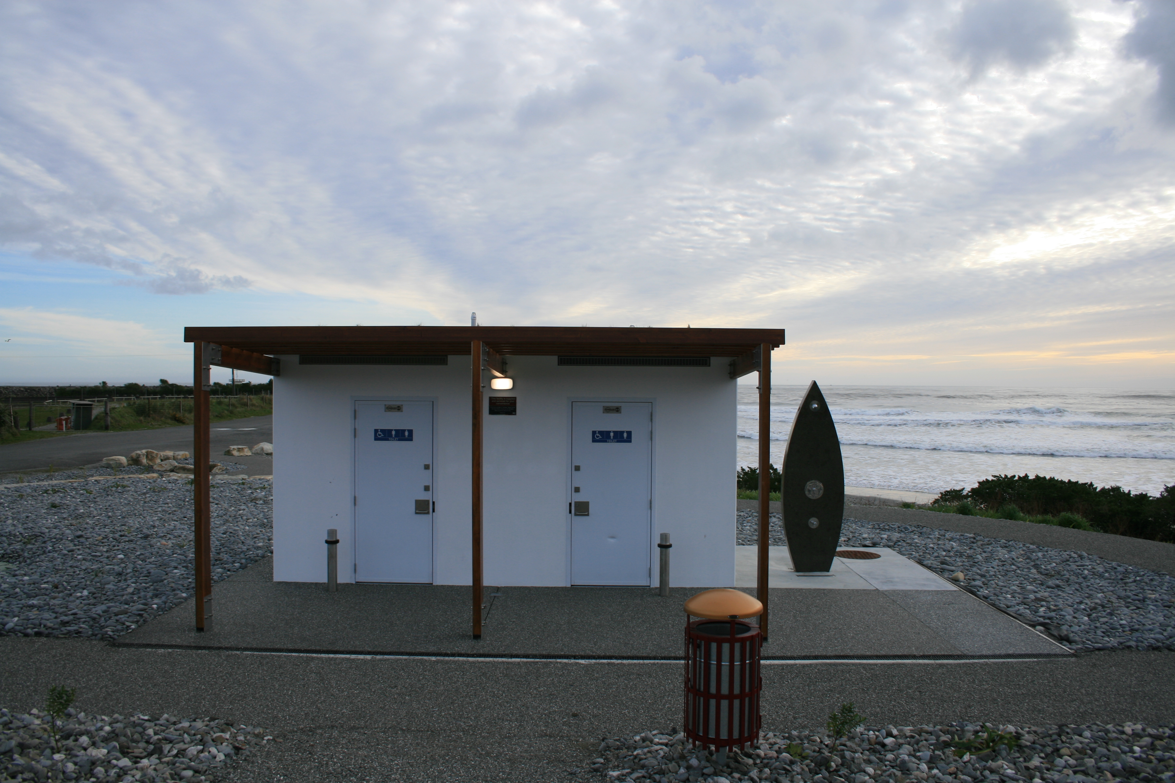 Don't get here too late. Very windy, it's completely exposed. Nice beach for surfing, very clean (flushing) toilets, outdoor shower, bins.
