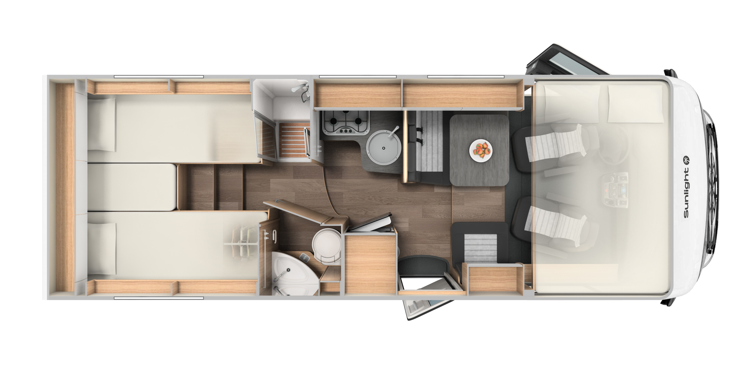 The Comfort Luxury is a one of a kind rental motorhome, that is only available to rent from McRent. It's state-of-the art features and panoramic windscreen will take in the view and lets you enjoy the scenery to the fullest. The vehicle comes with either the two single beds with a large storage locker to carry all your bikes and activity gear, or an island bed that is very suitable for a couple, that wants to spread out and experience the most luxurious motorhome New Zealand has to offer.