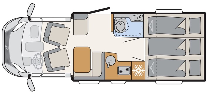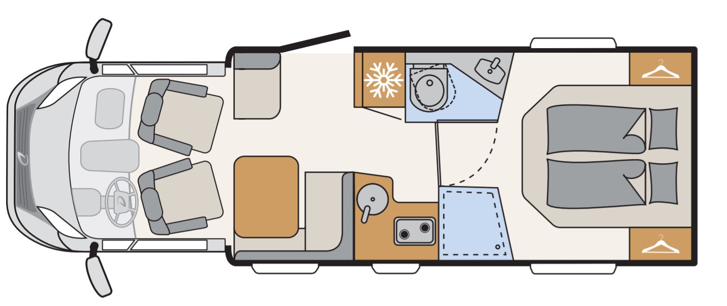 This 2-berth comes with 4 seat belts, and is suitable for couples, single or cost-conscious travellers that do not want to miss out on having a highly reliable and state-of-the art motorhome for their holiday.