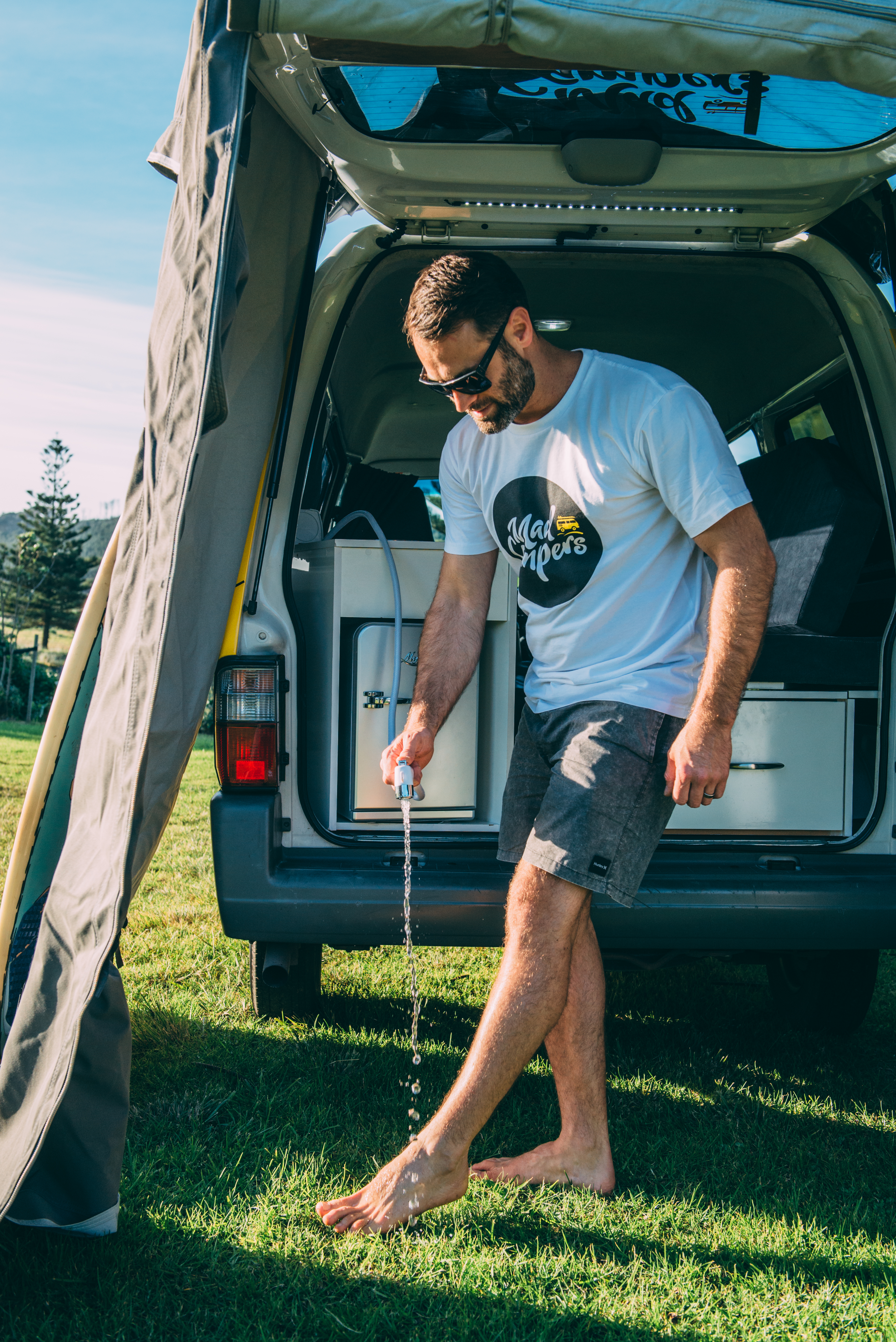Mad Campers have been thoughtfully designed to optimize your travel experience with a high quality, innovative and functional fit out. We're really proud to offer added extras such as an extendable hose tap, a switch board controlling your electrics from the back of the van, and our innovative pull out kitchen that provides you with HEAPS more living space!