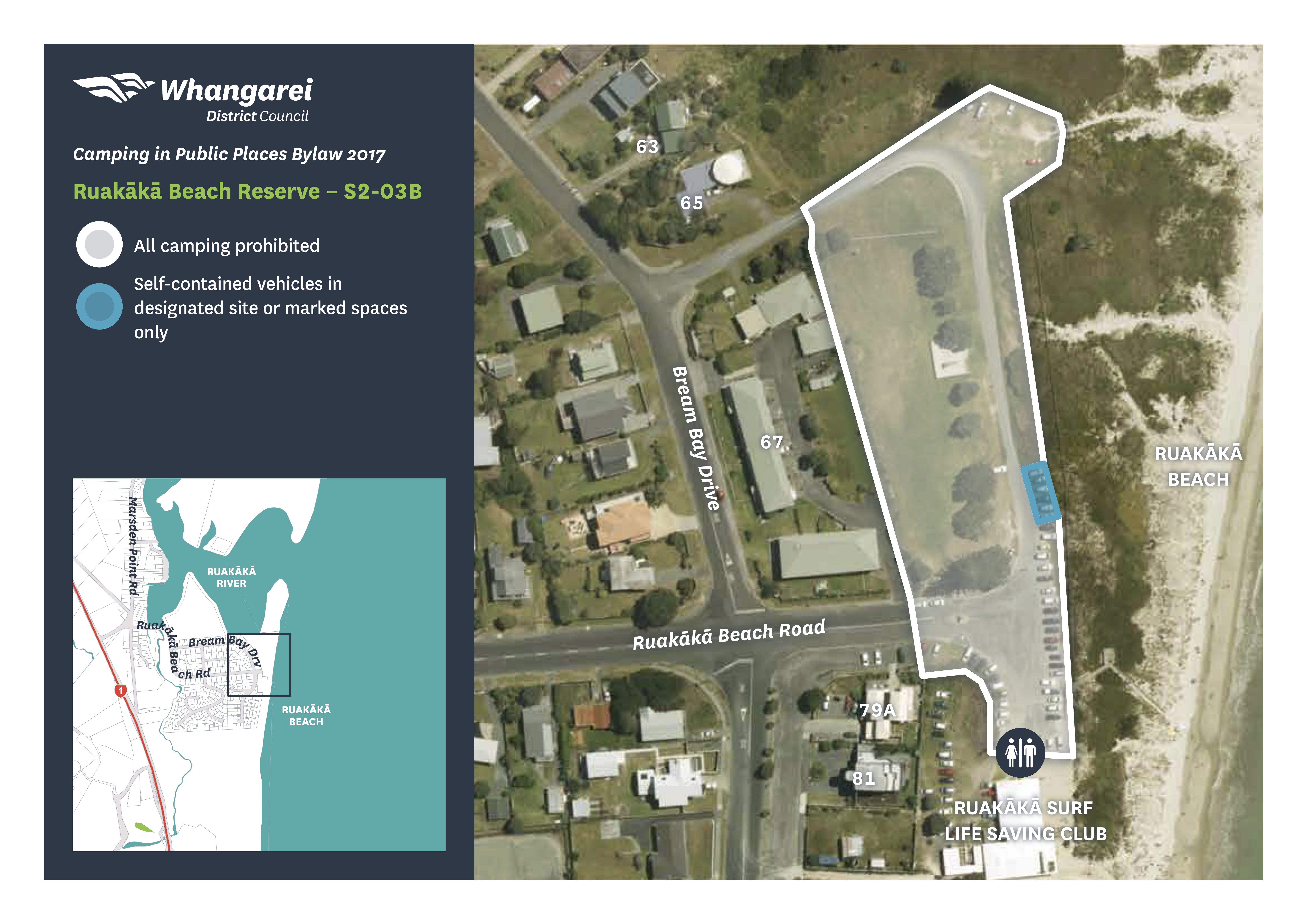 The spots at Ruakaka beach had been filled up (only really room for the 4 motor homes but might fit a couple more smaller vans) however the town had also designated an area of the River Side Reserve (on