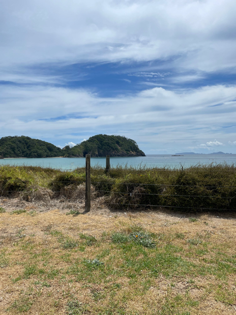 Long beach with estuary at the end. You can walk in estuary at low tide. At north end 1 hour round track takes you to headland then beautiful Whale Bay. Accessible only by foot or boat. Lovely walk through Bush and farmland. Peaceful holiday town with a dairy. Clean toilet. Only minus was a visit by boy racers at night doing donuts by vans. Luckily their visit was short. Room for 4 Van's in allocated site. Will return in summer.