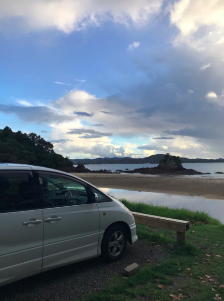 We got there too late for those parks and the Northland Freedom camping ambassador came along and said in January there’s overflow parking allowed on the grassy park 50m along passed the boat ramp. Great spot, again on beach, see view, nice tree to park under. Climb up steep hill (bit of gorde) but nice view at the top, only 5 mins.