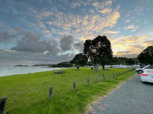 When we arrived late Dec perhaps 1/3 the site was too boggy to park in but we managed to find a spot nonethleless. Decent public toilets a short walk away and a very pretty little jetty - great photo ops! A nice spot to stay on our way deeper into Whangetei Heads.